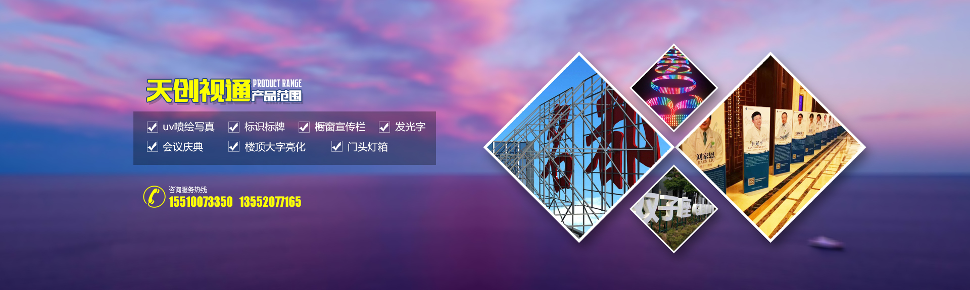 業(yè)務(wù)主要包括樓頂大字,地產(chǎn)圍擋,樓宇標(biāo)識(shí),精神堡壘,樓體立體發(fā)光字,亞克力字,UV平板噴繪,寫(xiě) 真噴繪,亞克力制品,無(wú)邊字,樹(shù)脂字,超級(jí)字,迷你字,展覽展示,導(dǎo)視牌等。